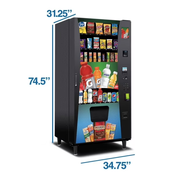 The Selectivend Advantage Plus Combo Snack & Drink Vending Machine offers a seamless way to start or expand your vending business. With its ADA-compliant design, this machine is accessible and user-friendly, featuring an easy-touch keypad, bill and coin acceptor, and optional credit card reader. It holds up to 353 items, including snacks, candies, and beverages, ensuring a wide variety of choices for customers. No assembly is required, simply load, set prices, and start vending.