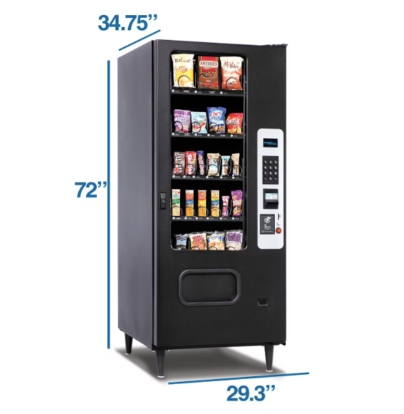 Selectivend SV3000 Vending Machine is a top-of-the line indoor snack vending machine featuring a glass front and live-display with bright LED lighting. Load up your snack machine with up to 23 different items, including seven types of chips, 12 smaller snack or candy options and four pastry options. With pull-out tilting trays, loading your customers’ favorite snacks is convenient. Select lower calorie and highly nutritious options to turn the SV3000 into a healthy vending machine for your customers!
